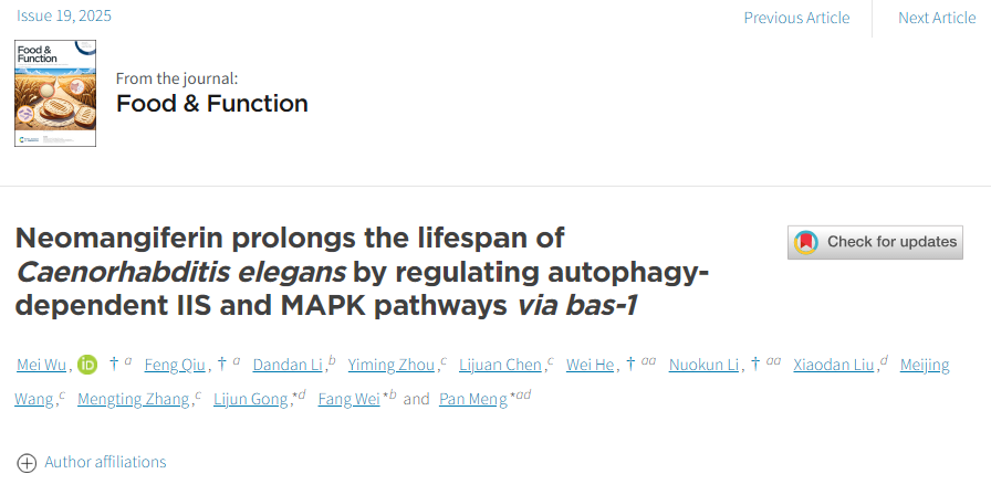 吃芒果竟能抗衰?!Food Funct新发现:新芒果苷靶向bas-1激活三重通路,显著延长秀丽隐杆线虫寿命