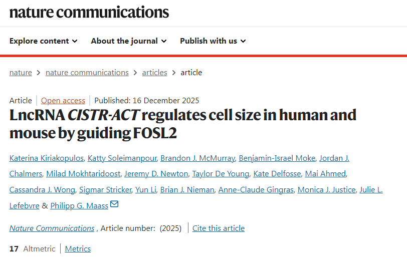 Nat Commun:“细胞尺寸调节器”现身!非编码基因如何成为细胞大小的“总指挥”?