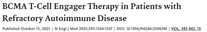 该发现提示,BCMA靶向T细胞衔接疗法或可成为传统治疗无效患者实现免疫再平衡的可行策略,值得进一步开展临床试验。