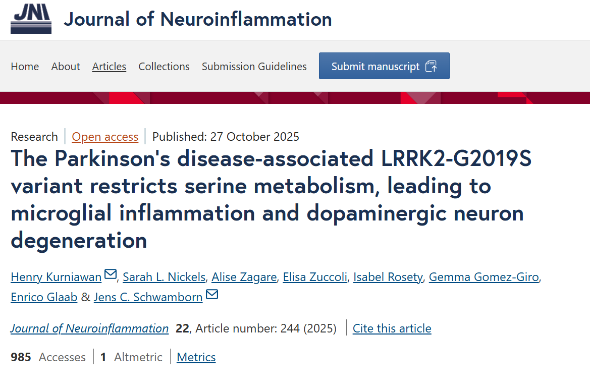 LRRK2-G2019S突变会让小胶质细胞出现糖酵解增强、丝氨酸合成受损,进而引发炎症并导致多巴胺能神经元退化,草酸可靶向这一代谢异常,缓解炎症与神经元损伤,为帕金森病治疗添新方向。