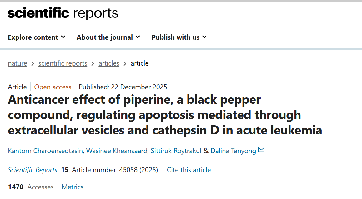 Sci Rep:黑胡椒活性成分靶向细胞外囊泡与组织蛋白酶D诱导急性白血病凋亡