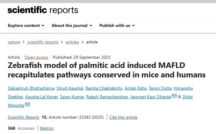 棕榈酸喂出斑马鱼脂肪肝,跨物种复现人鼠关键通路!Sci Rep揭示代谢相关脂肪性肝病研究新工具