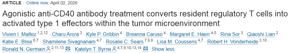 Immunity:激动性CD40疗法重编程调节性T细胞,将免疫抑制者转为肿瘤杀伤支持者,攻克胰腺癌耐药