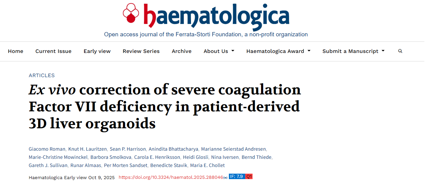 研究通过CRISPR技术纠正患者诱导多能干细胞的凝血因子VII基因突变,生成的肝类器官可分泌功能性凝血因子VII并改善凝血功能,为该疾病的自体细胞治疗提供关键实验依据。
